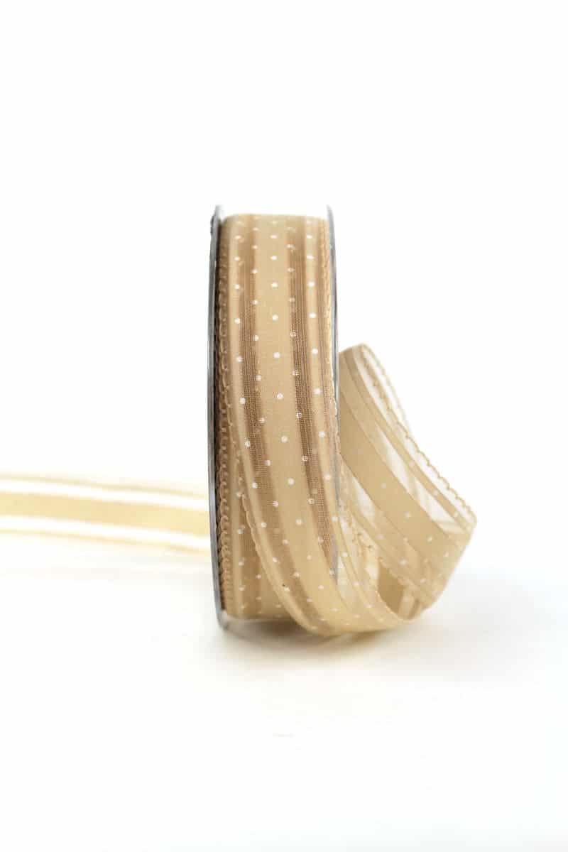 Airy decorative ribbon with dots, beige, 25 mm, 20 m