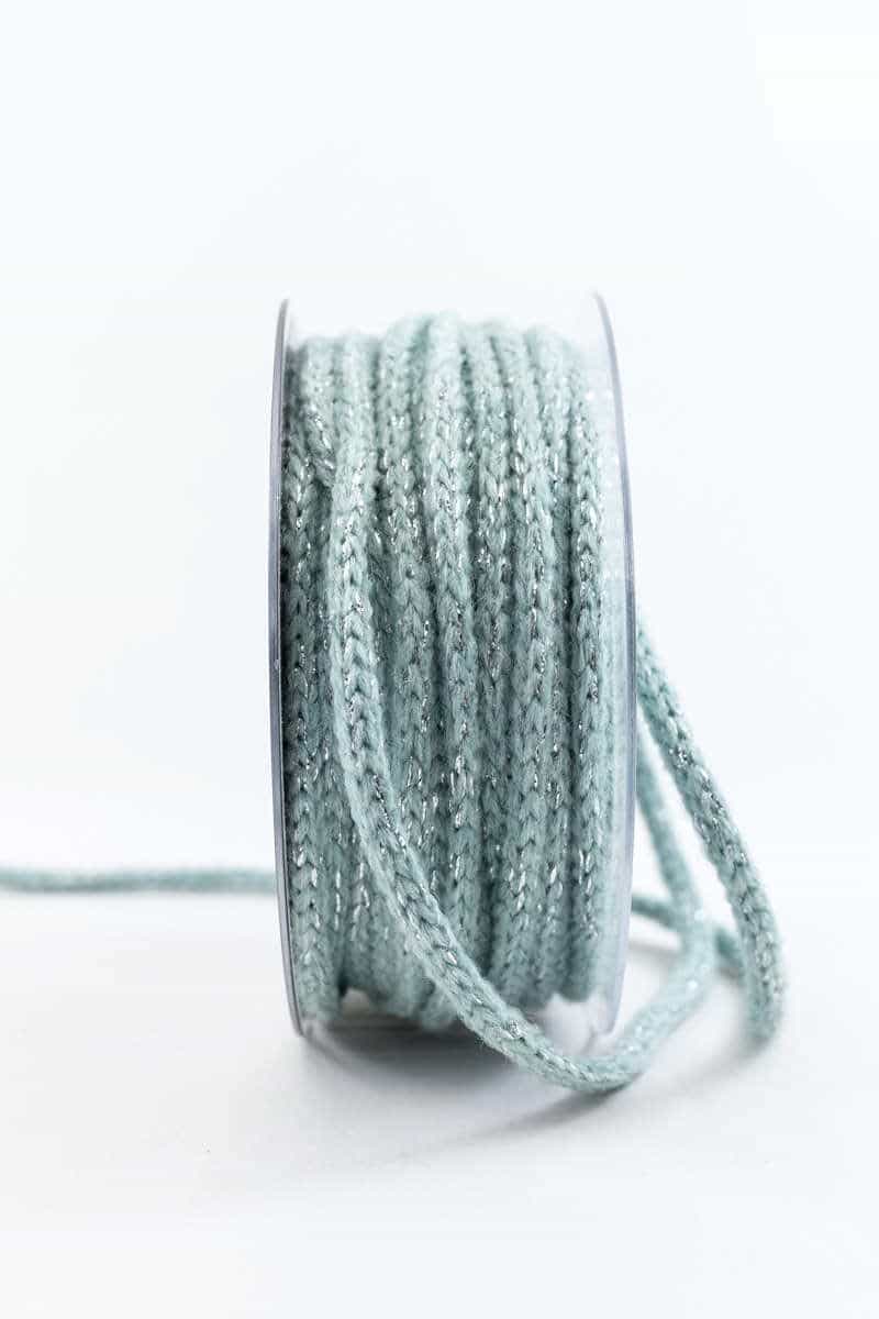 Very nice, monochrome braided cord with a fine silver lurex thread. This makes the cord glitter discreetly.