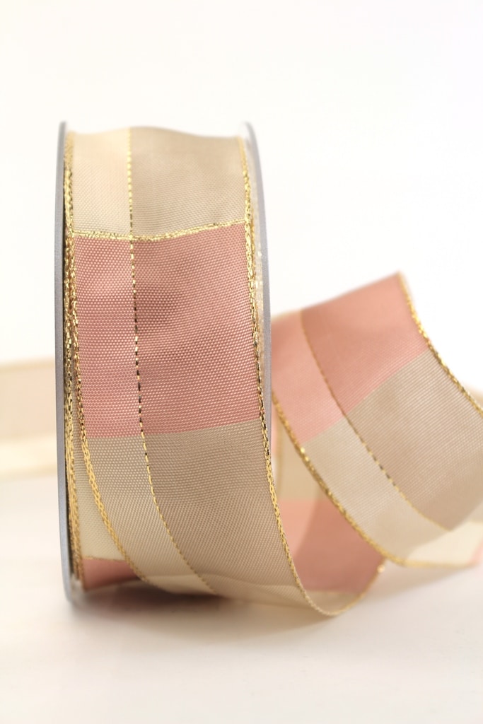 Carob ribbon Christmas, pink-gold, 40 mm wide