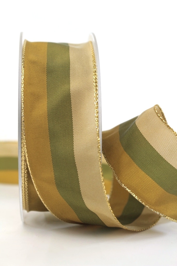 Simple striped gift ribbon with fine gold edge, 40 mm wide.