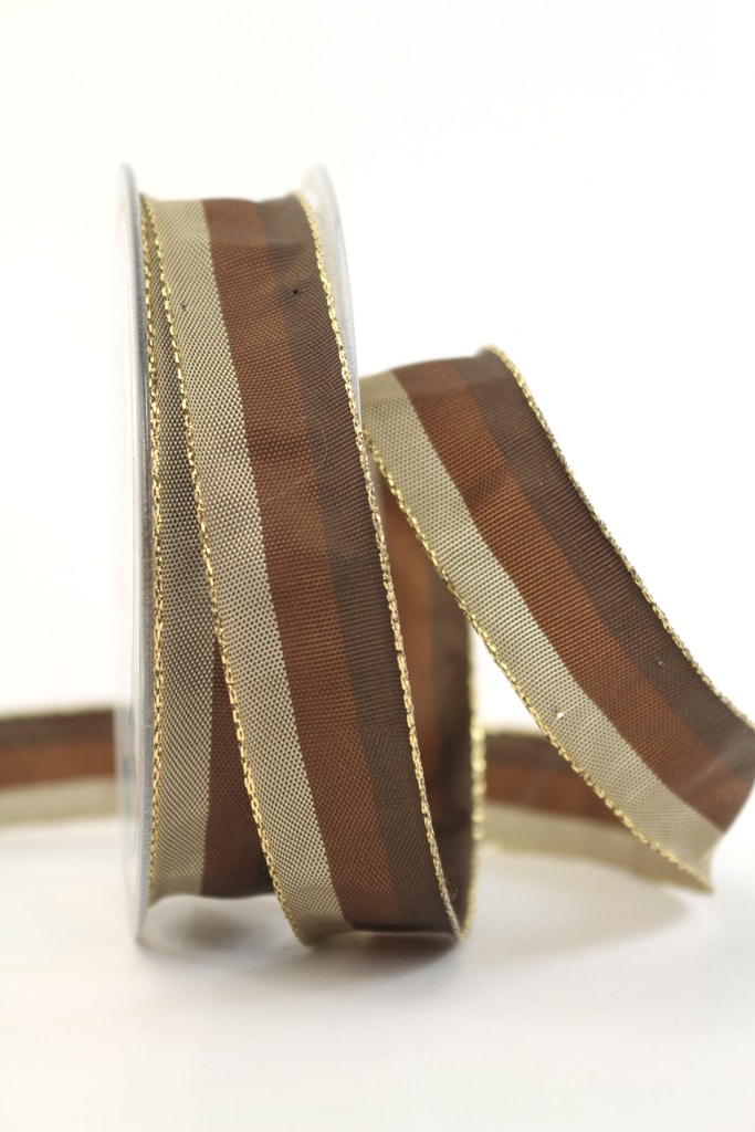 Christmas ribbon stripes, brown taupe, 25 mm wide, 25 m roll