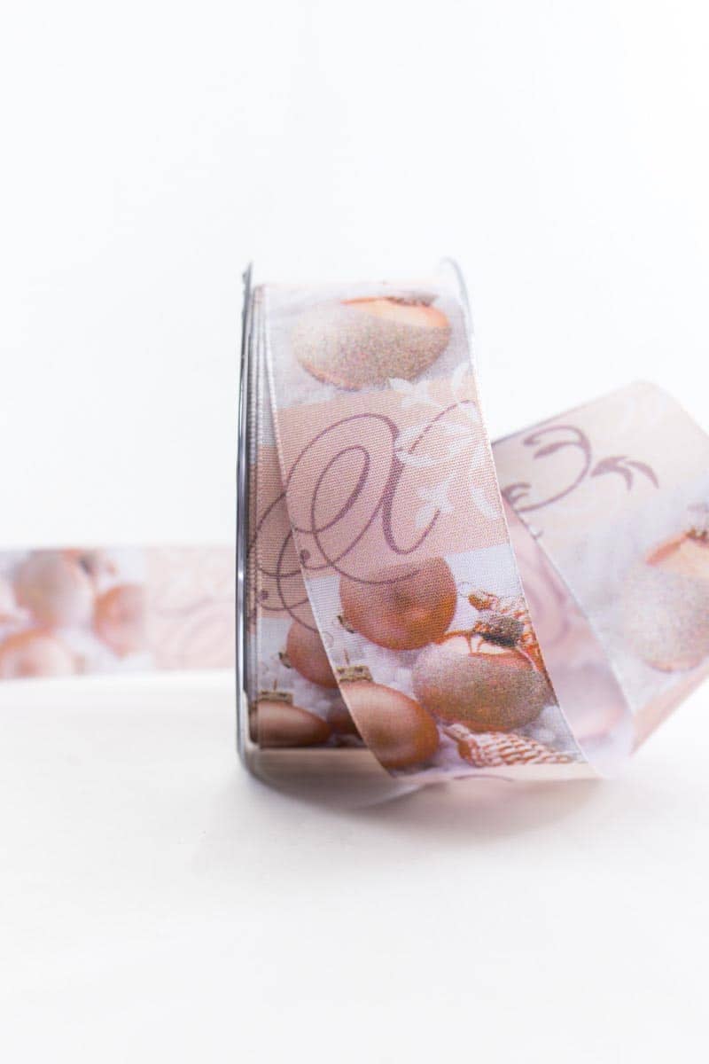 Atmospheric, delicate motif with Christmas tree balls. All in pastel, discreet apricot.
