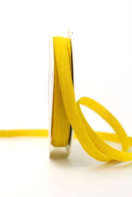 Plain linen ribbon in yellow. Solid-woven structural tape for many decorative applications.