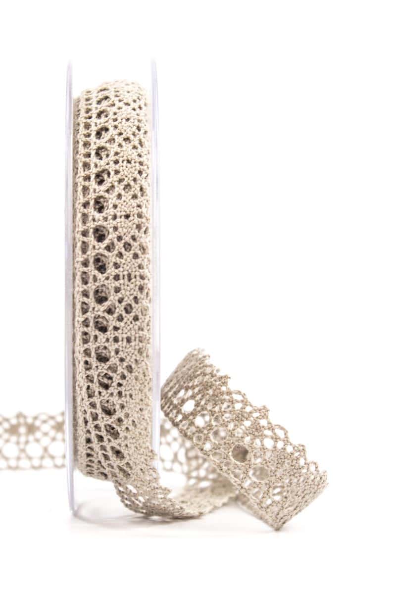Cotton lace, taupe, 15 mm wide, 10 m roll