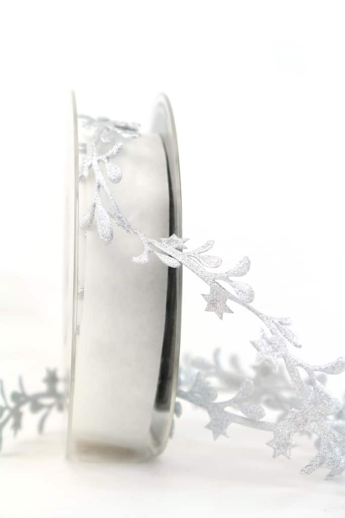Decoration garland leaves, silver, 25 mm, 5 m roll