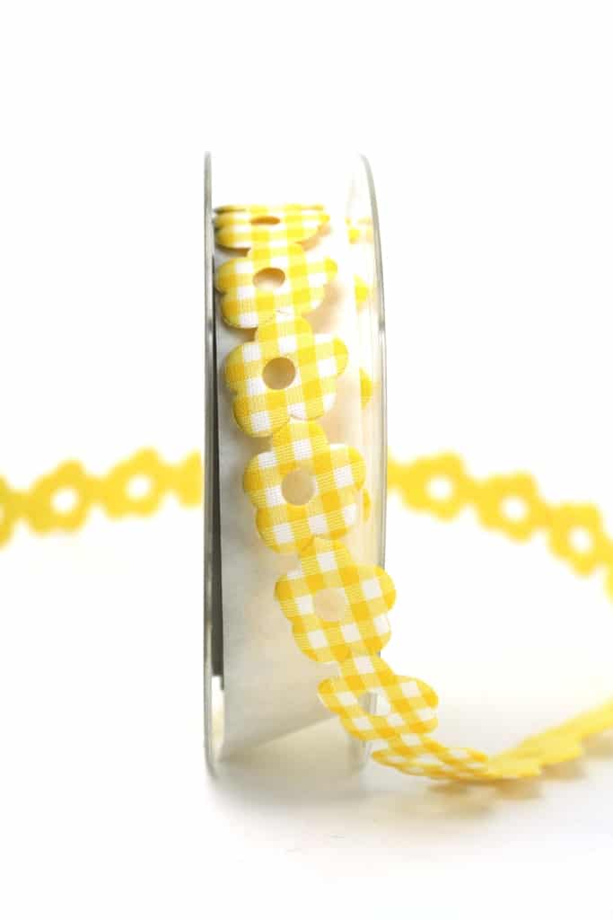 Decoration garland with flowers, yellow check, 25 mm, 5 m roll