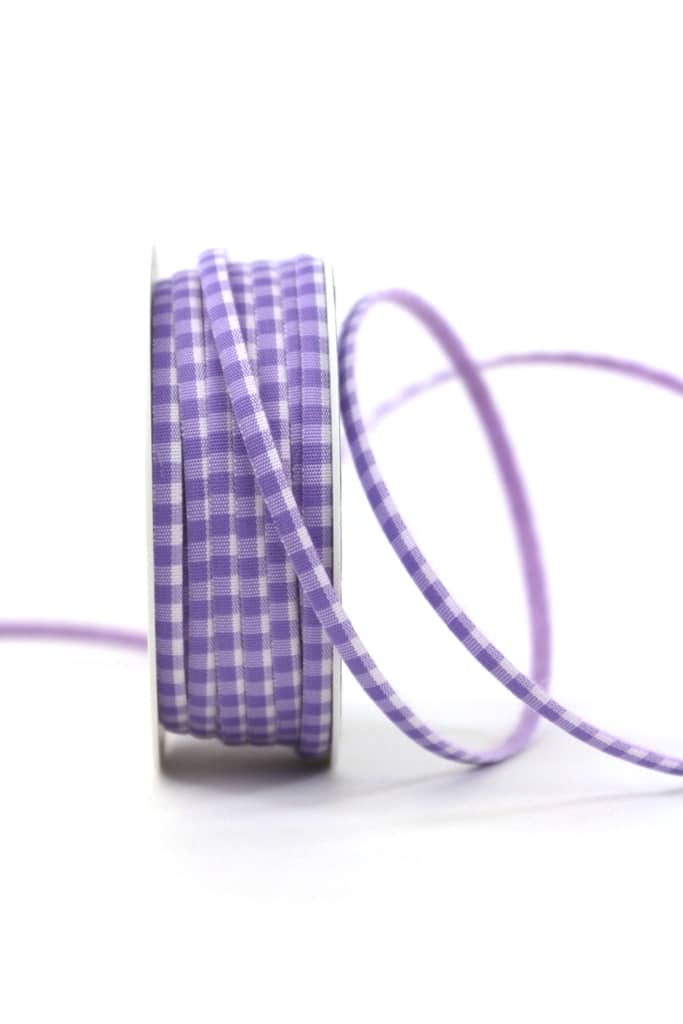 Narrow decorative ribbon with a fancy 2-sidedness: The front is lilac/white chequered while the back is plain lilac. The tape consists of a fabric-felt combination and is therefore very trendy.