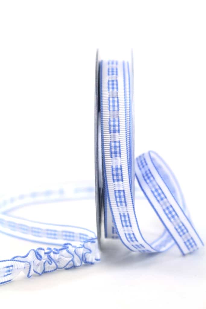 Decorative ribbon Rips-/Satin, blue-white, 15 mm, 20 m roll