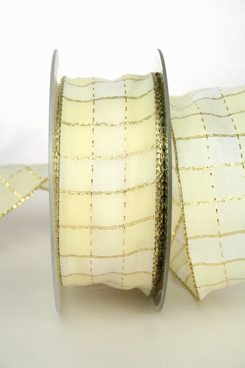 check tape, cream-gold, 40 mm wide, 20 m roll, with wire edge