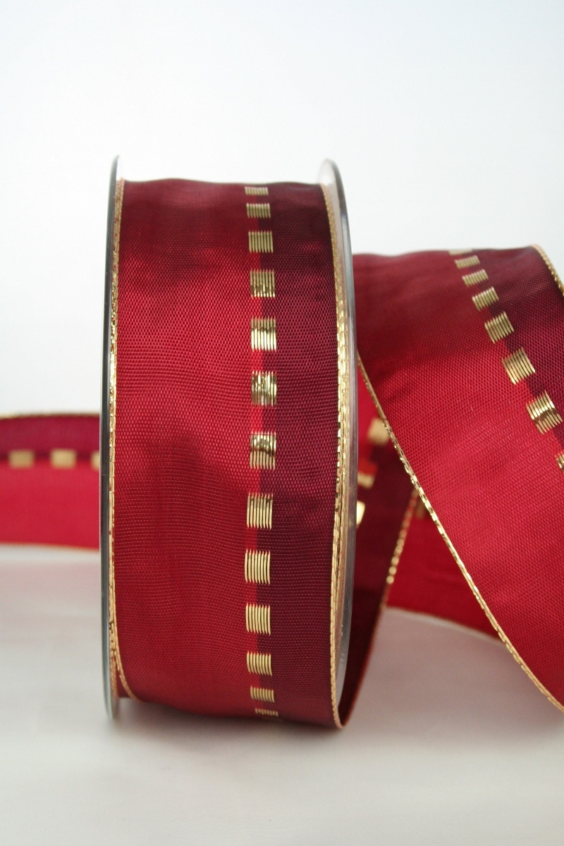Christmas ribbon in red-bordeaux-gold, 40 mm wide, 25 m roll