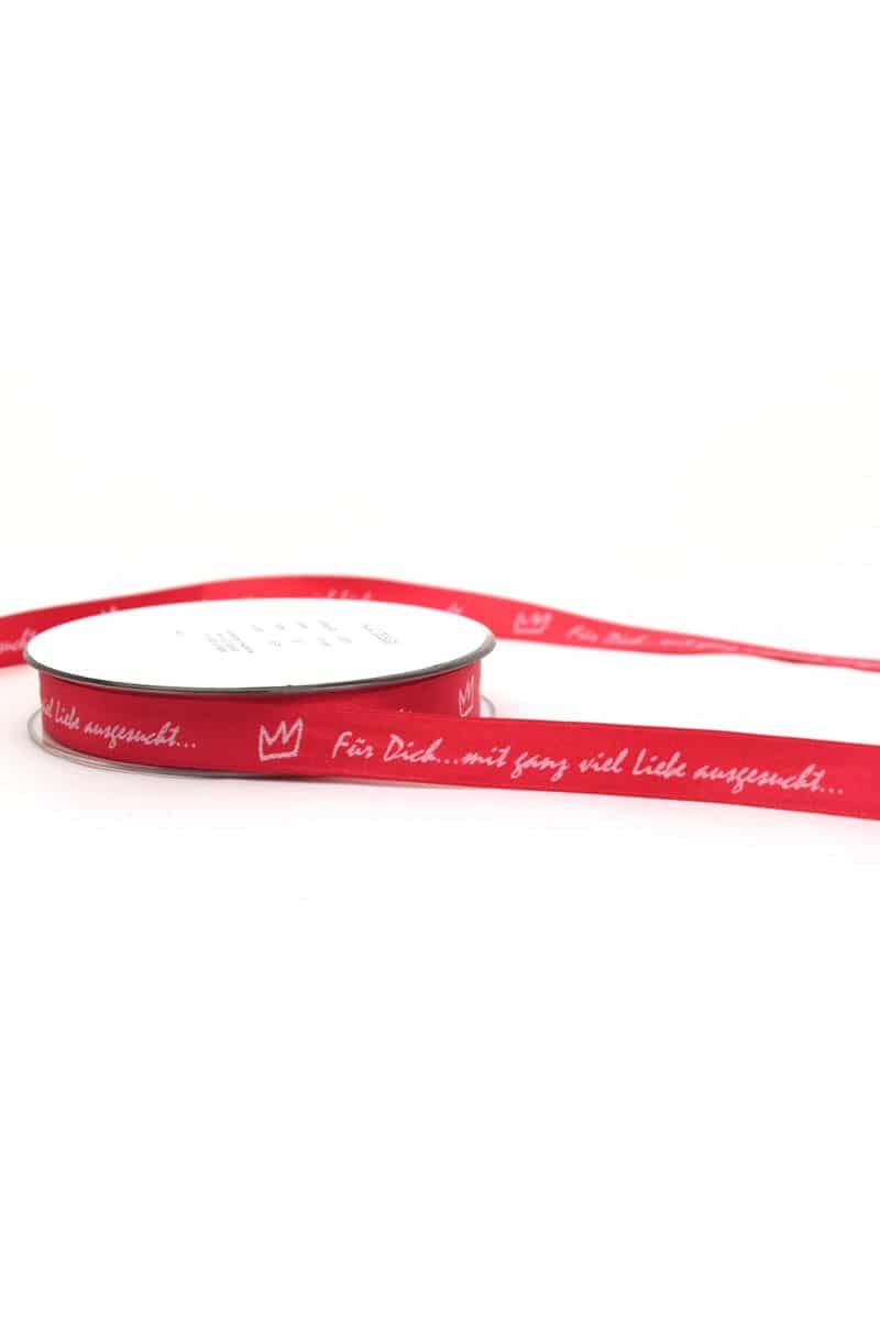 A special ribbon for special gifts. The red double satin binding has a white imprint with the text “For you… with a lot of love…” and a small crown.