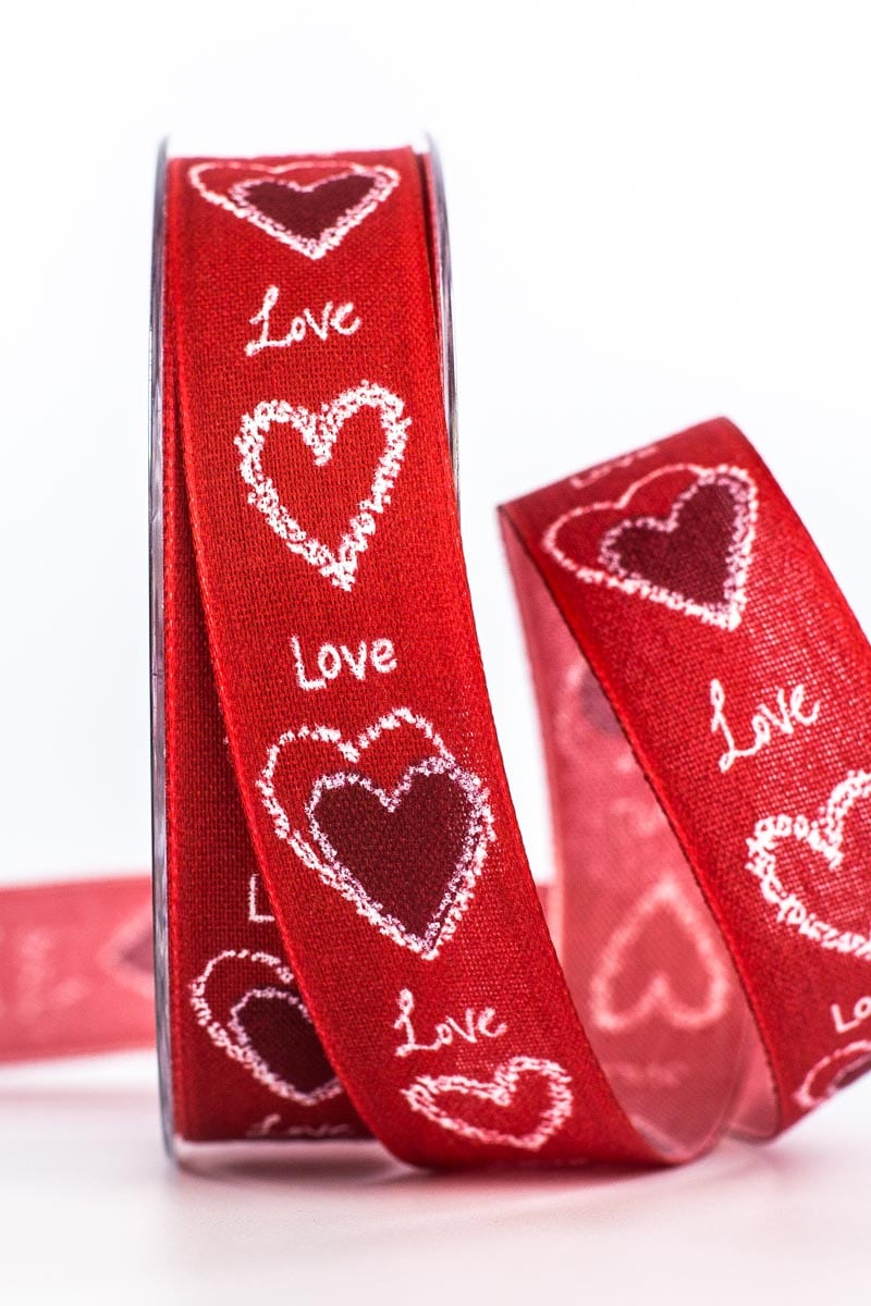 Gift ribbon “Love”, red, 25 mm wide, 20 m roll