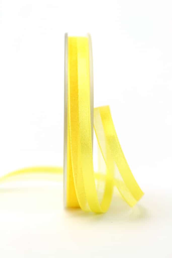 Decorative ribbon satin/organza, yellow, 10 mm wide, 25 m roll