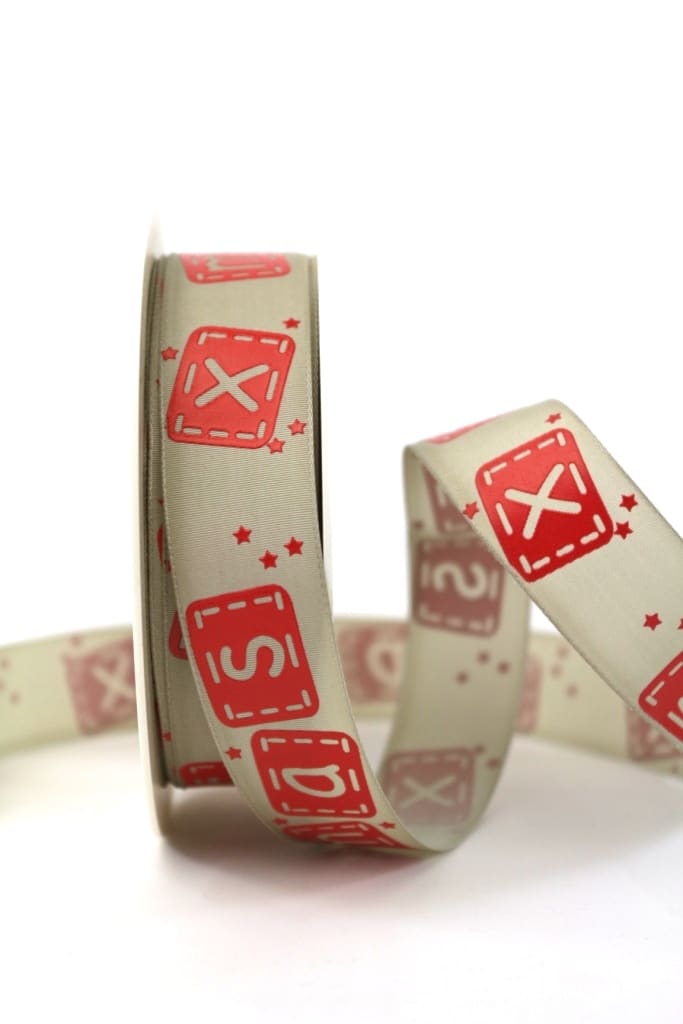 Modern gift ribbon with Xmas imprint in block letters.