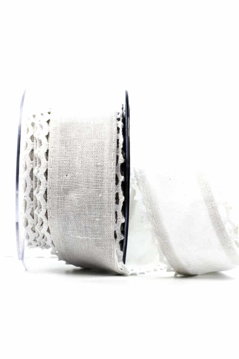 This medium-wide jute ribbon with attached lace is fully in line with the trend. The jute ribbon is particularly finely woven for fine, festive occasions. Every festive table is enhanced with this great ribbon.