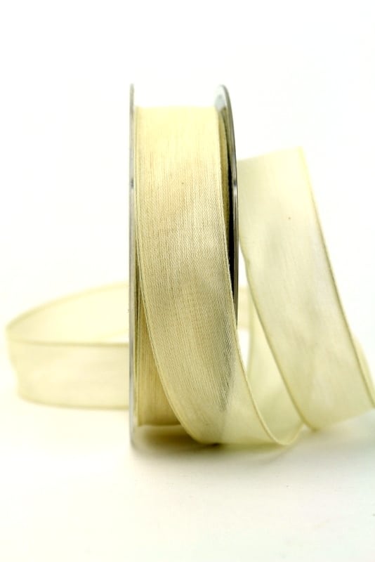 Linen tape, cream, 25 mm, 25 m roll with wire