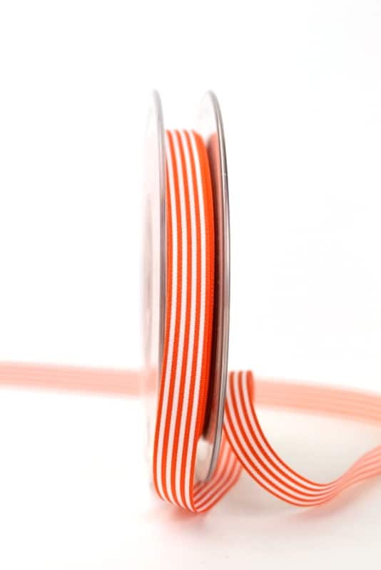 Plain fine taffeta ribbon with even stripe design orange-white.