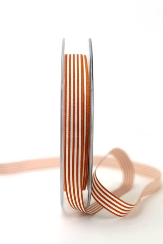 Narrow taffeta ribbon with rust-white stripes, 10 mm wide