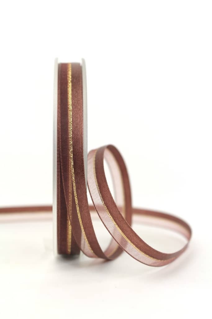 organza ribbon with satin, chocolate brown, 10 mm wide, 25 m roll