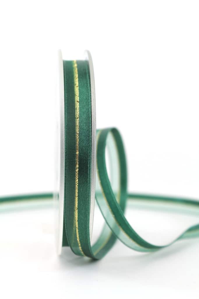 organza ribbon with satin, dark green, 10 mm wide, 25 m roll