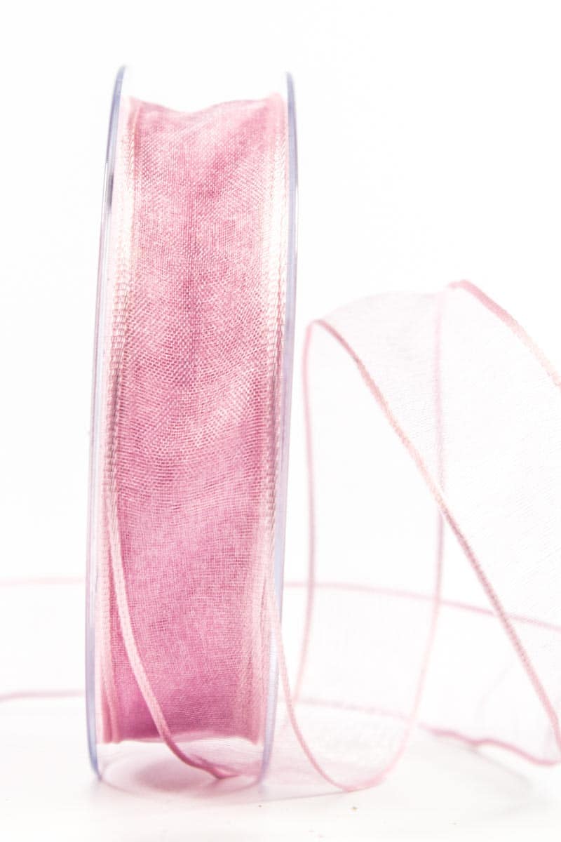 organza ribbon with wire edge, pink, 25 mm wide, 20 m roll