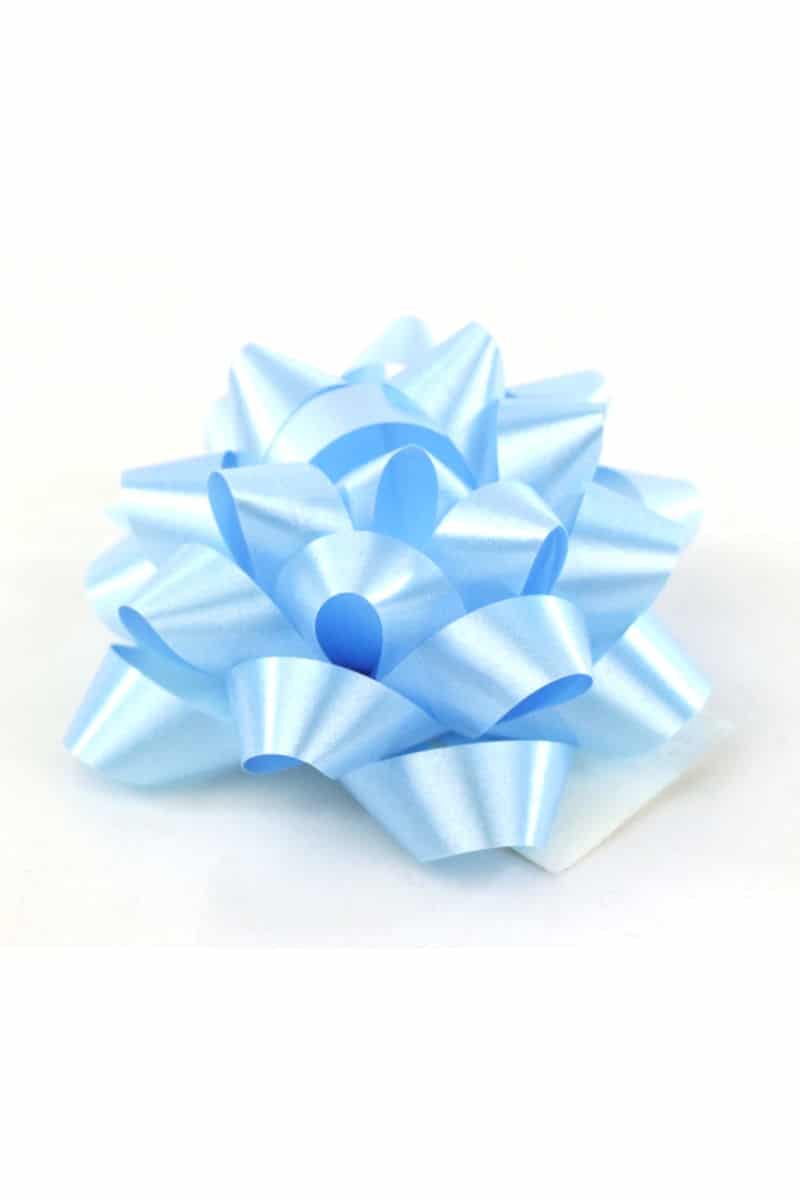 Our rosettes are made of 10 mm wide polyband and have a diameter of approx. 60 mm. They are ideally suited for simultaneous processing with 10 mm wide poly-ribbon tape. They have an adhesive dot on the back with which they can easily be attached to the gift.