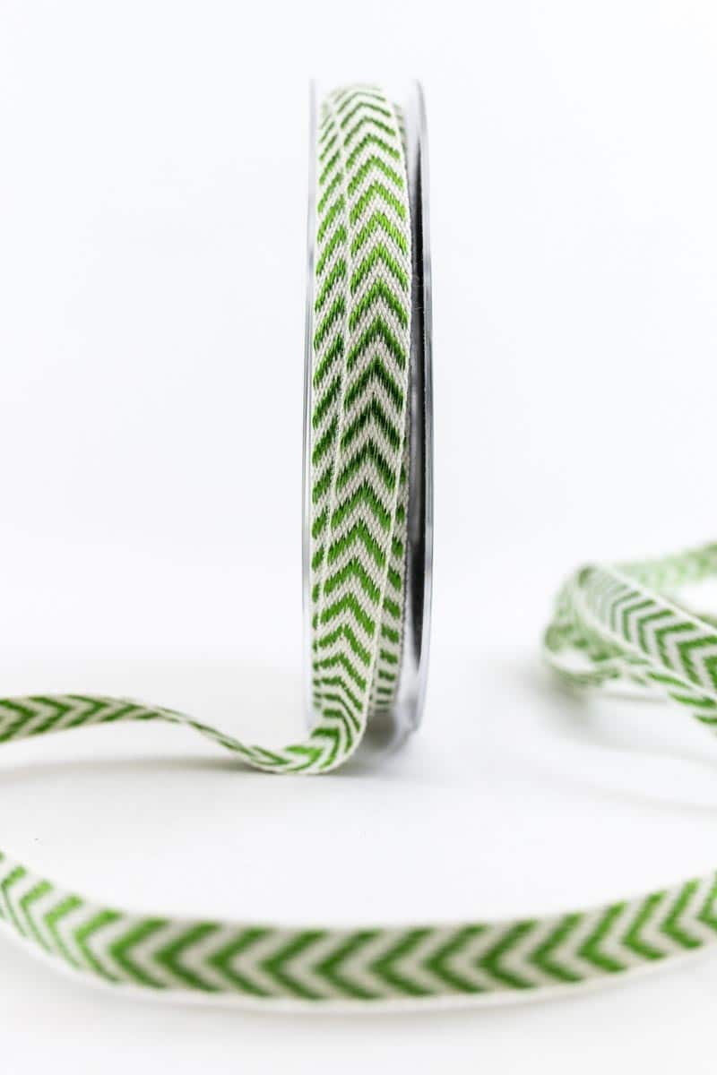 Narrow decorative ribbon with serrations, green, 10 mm, 20 m roll