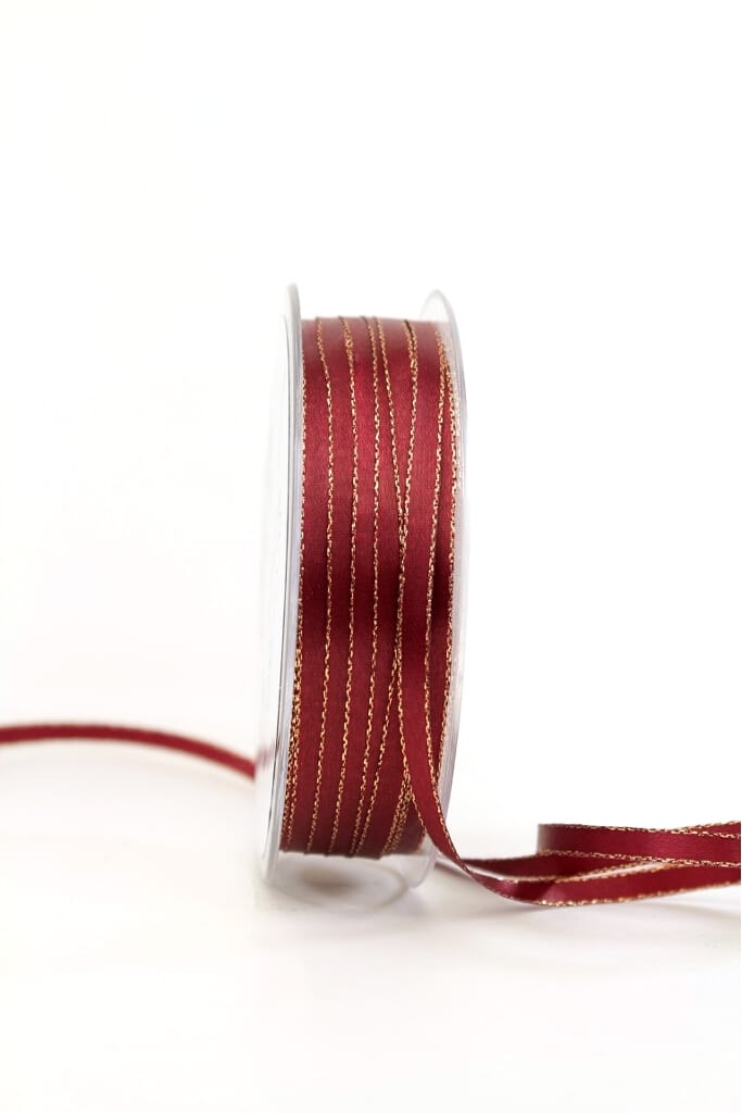 Narrow satin ribbon with a width of 6 mm. Bordeaux with delicate gold edge.