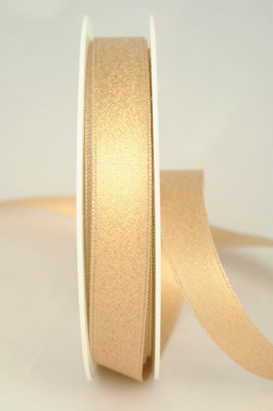Satin ribbon cream-gold glittering, 15 mm wide, 25 m roll