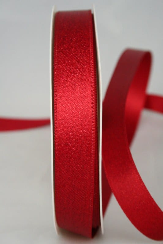 Satin ribbon red-gold glittering, 15 mm wide, 25 m roll