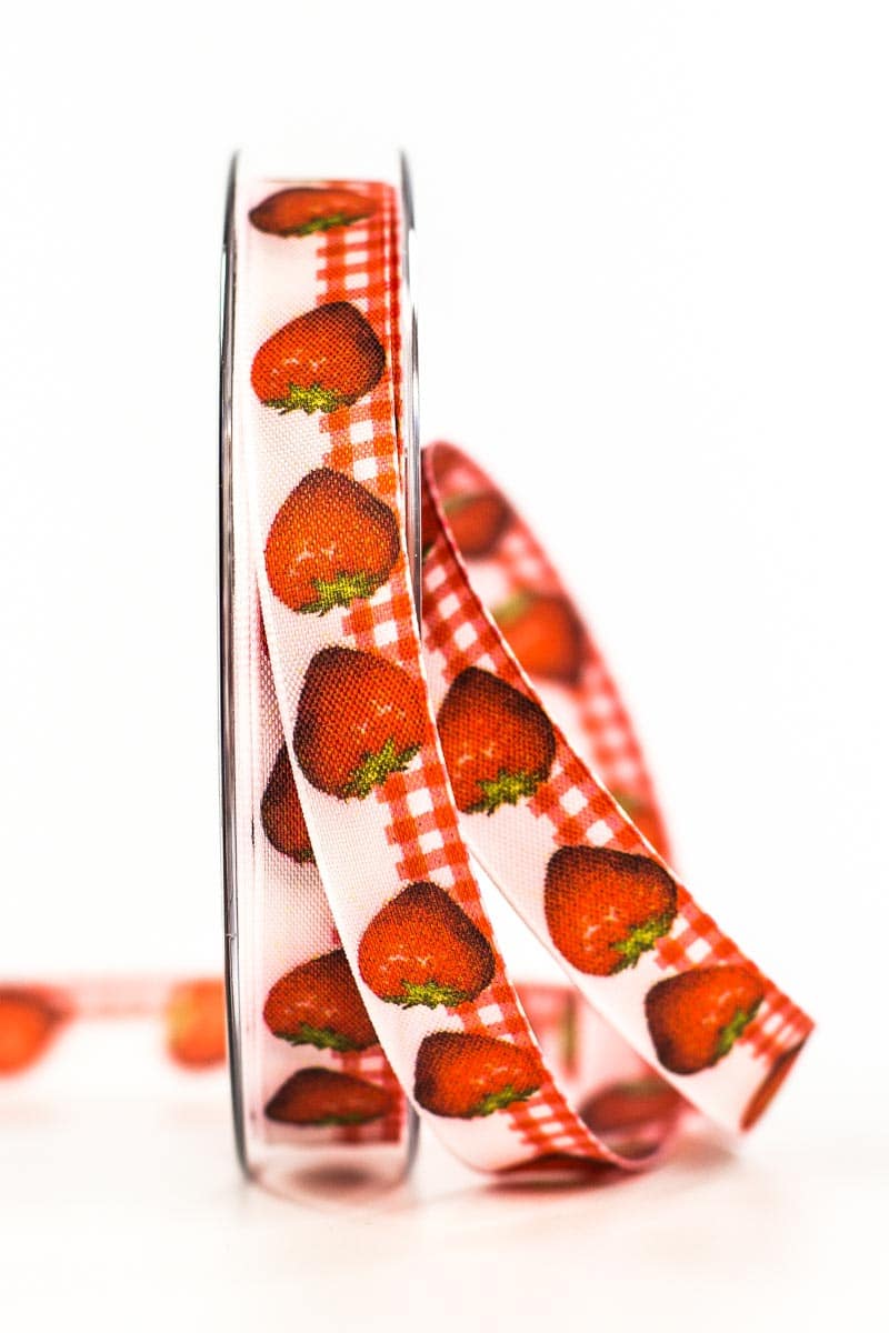 Strawberry ribbon, 15 mm wide, 15 m roll