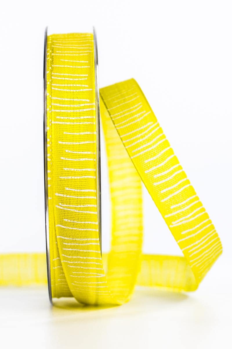 Linen structured tape with stripes, yellow, 15 mm wide, 20 m roll