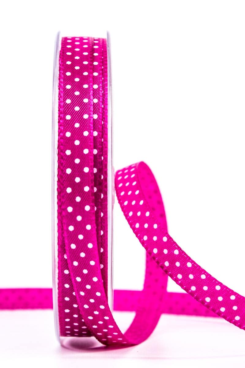 Taffeta ribbon with dots, pink, 10 mm wide, 25 m roll
