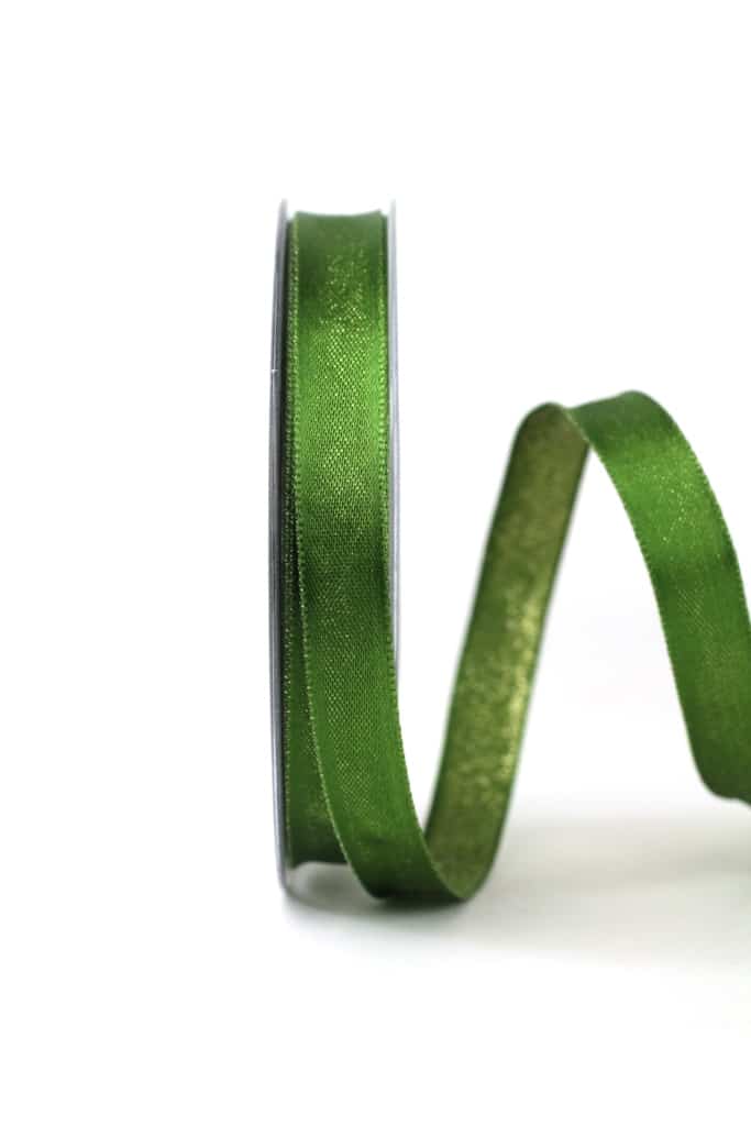 Two-sided satin ribbon green-gold, 15 mm wide