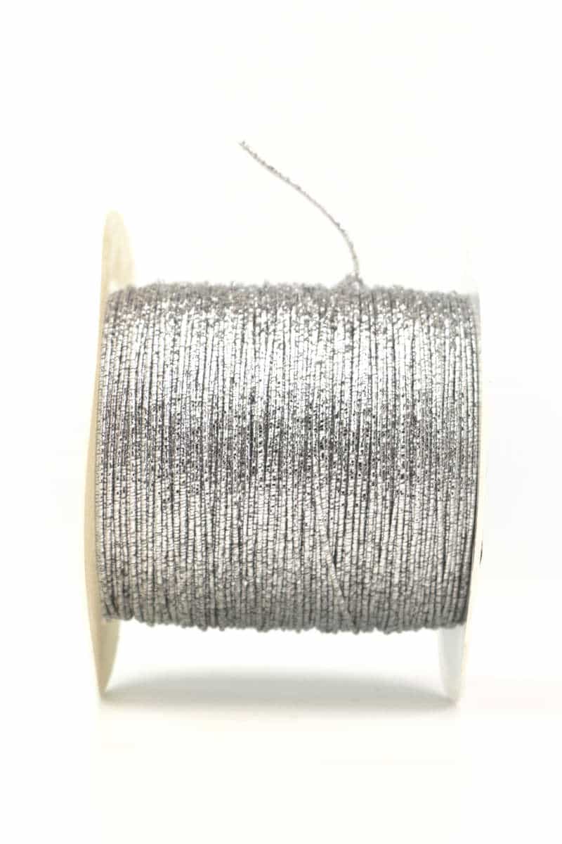 Classic wire gimp in silver. A thin wire is wrapped with a coloured lurex thread. Great for handicrafts, decorating, tying, etc.