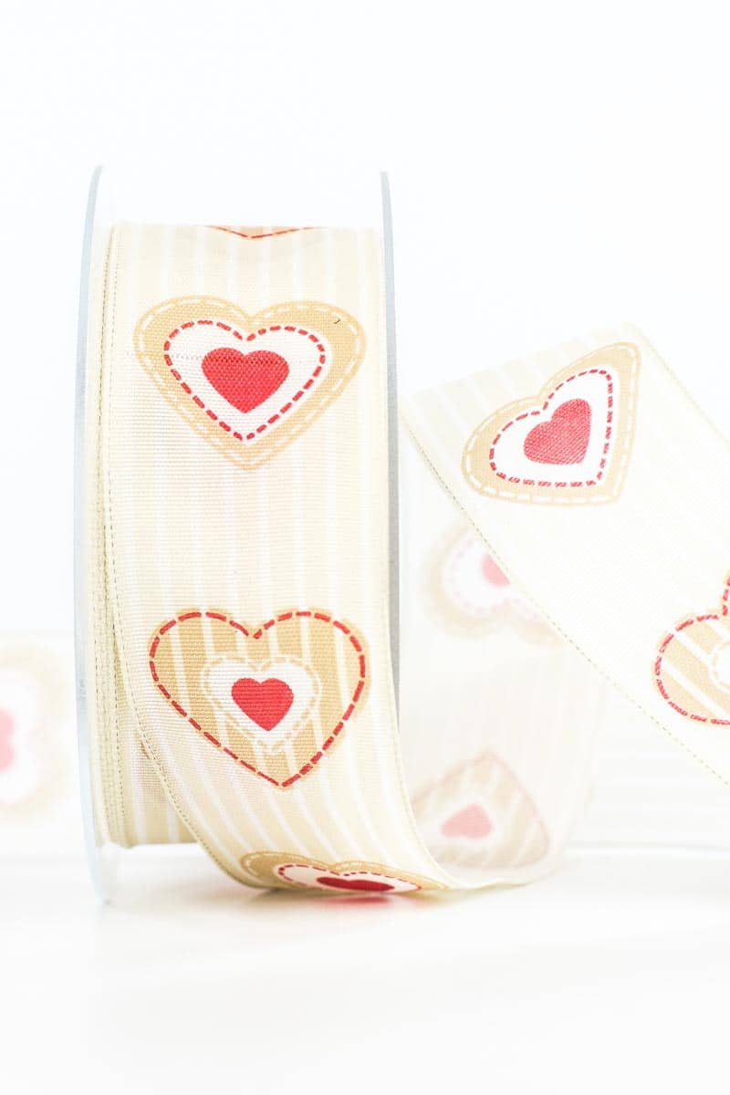 Wrapping ribbon heart, beige, 40 mm wide, 20 m roll