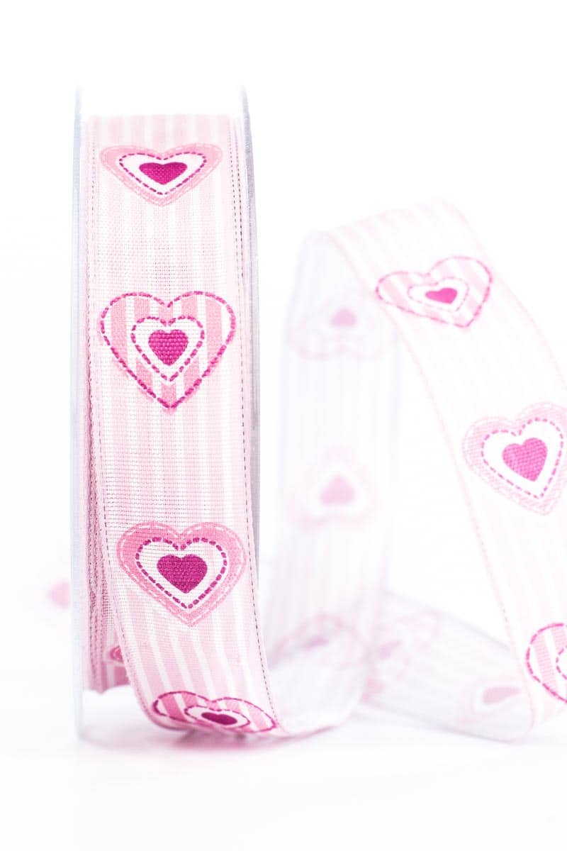 ribbon heart, pink, 25 mm wide, 20 m roll