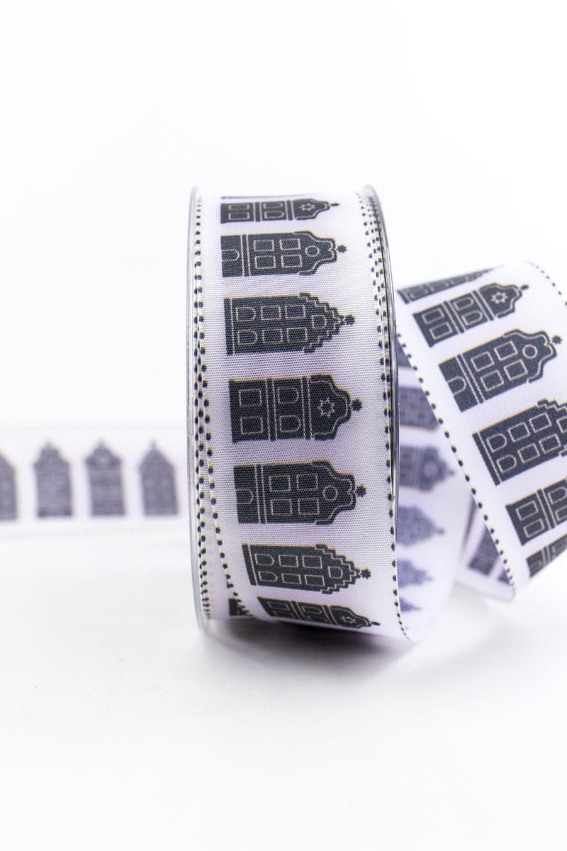 Wrapping ribbon houses, black-white, 40 mm, 20 m roll